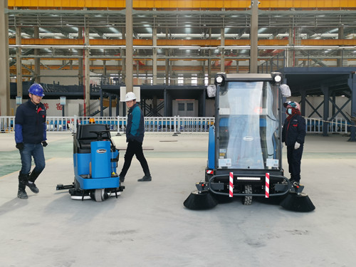 GT110+驾驶式洗地机一台和全封闭式驾驶式扫地车一台,而我们东裕公司的售后人员又亲临现场培训与指导!!!